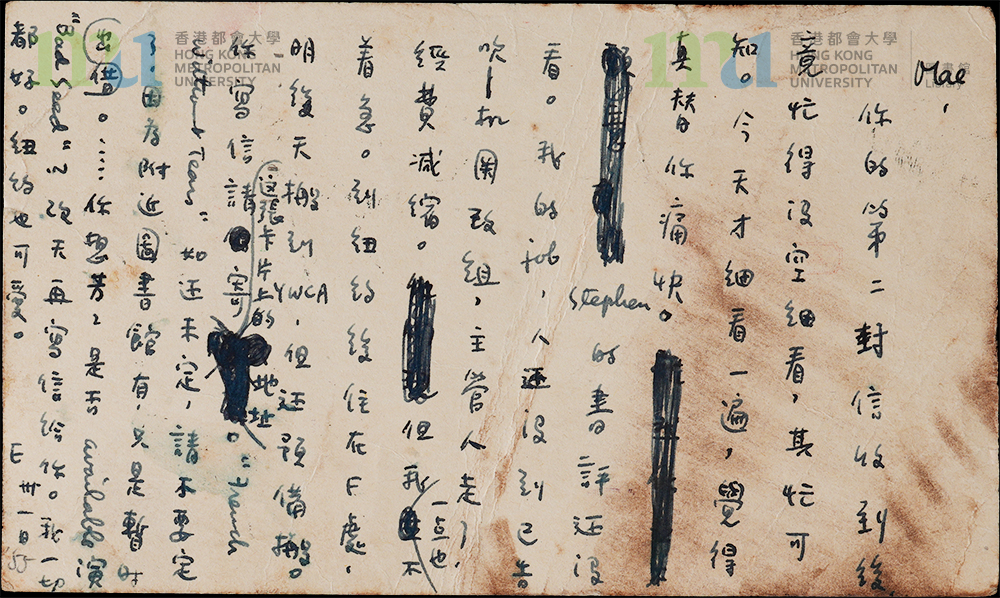 14 - 張愛玲致宋鄺文美信件 (1955年10月31日) = Letter from Eileen Chang to Mae Fong Soong (31 October 1955)