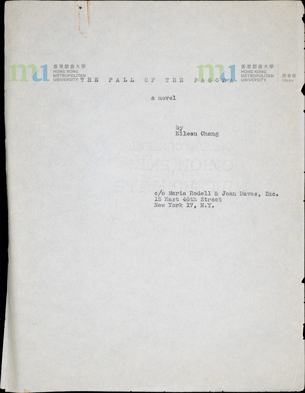20 - The Fall of the Pagoda 打字稿封面 = Cover of Typewritten Manuscript: The Fall of the Pagoda