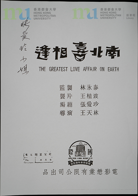 29 - 《南北喜相逢》劇本封面 (影印本) = Script Cover: The Greatest Love Affair on Earth (Photocopy)