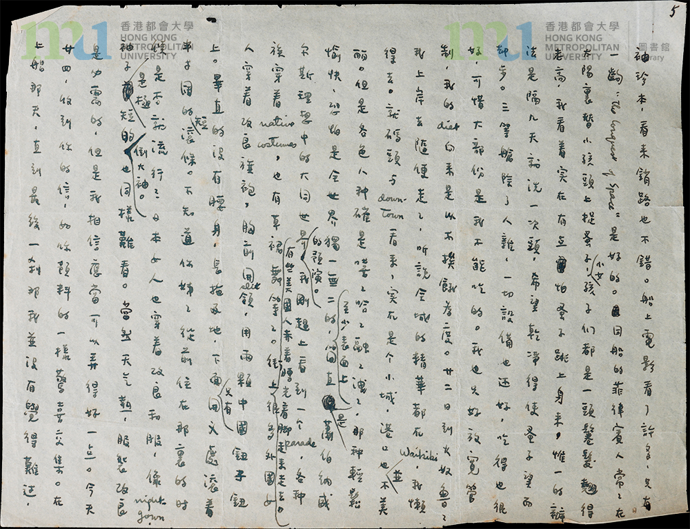 頁5 = page 5 | 張愛玲致宋鄺文美信件 (1955年10月25日) = Letter from Eileen Chang to Mae Fong Soong (25 October 1955)