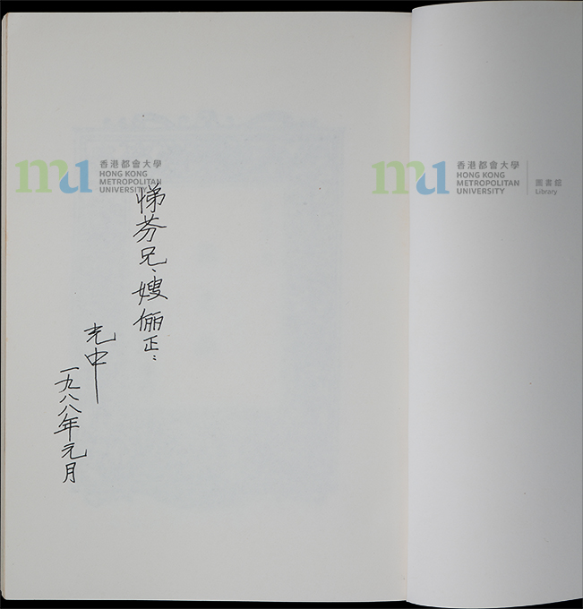 Part of: 12 - 《秋之頌》簽名本 (由余光中贈與宋淇及宋鄺文美) = Signed Copy of Ode to Autumn (Presented by Yu Guangzhong to Stephen Soong and Mae Fong Soong) (2 objects)