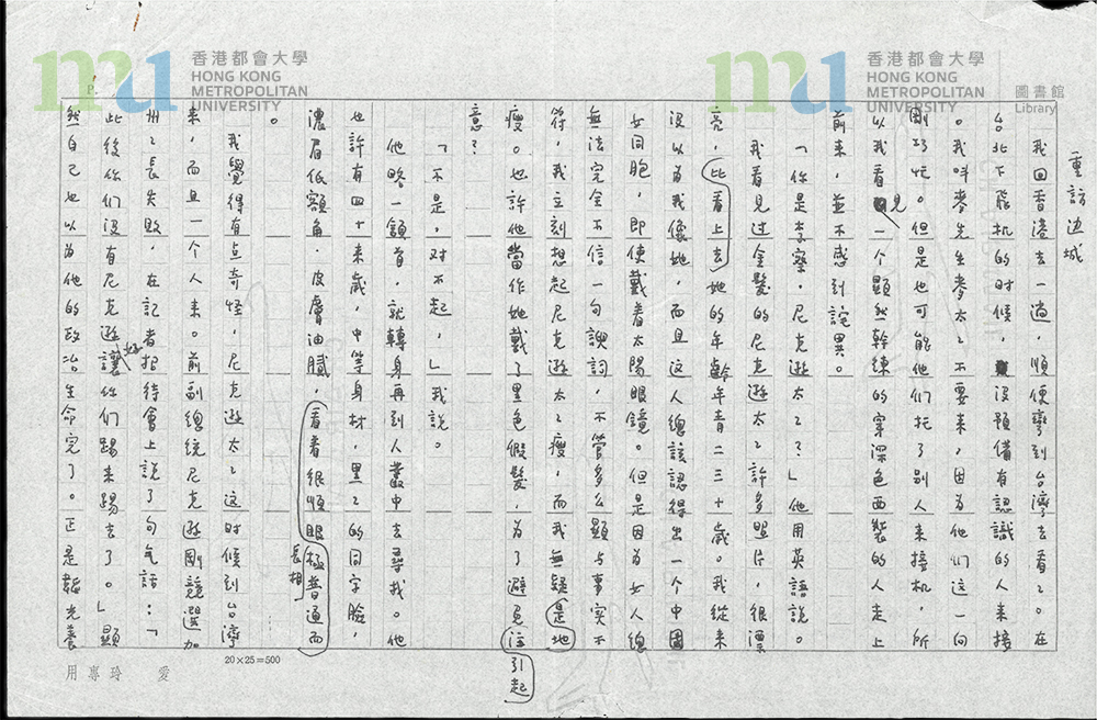 15 - 〈重訪邊城〉手稿 = Manuscript: ‘A Return to the Frontier’
