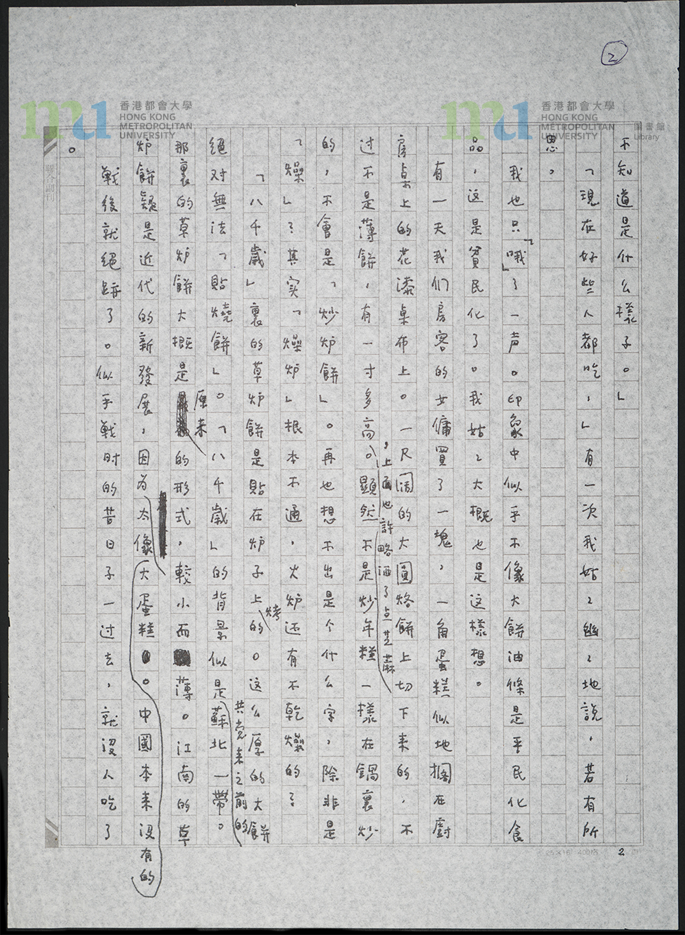 頁2 = page 2 | 〈草爐餅〉手稿 = Manuscript: ‘Straw Oven Cake’