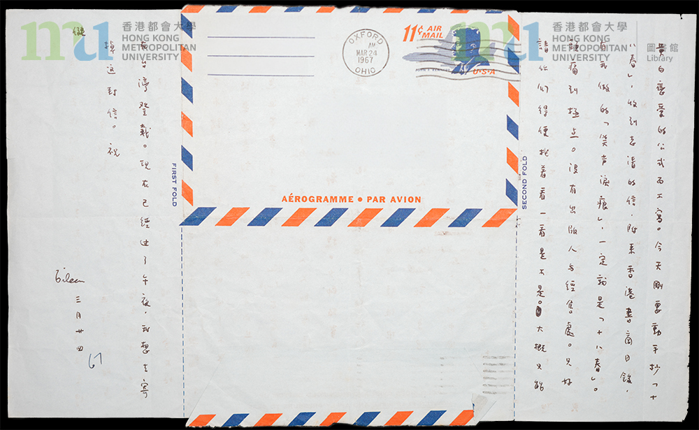 Part of: 36 - 張愛玲致宋淇信件 (1967年3月24日) = Letter from Eileen Chang to Stephen Soong (24 March 1967) (2 objects)