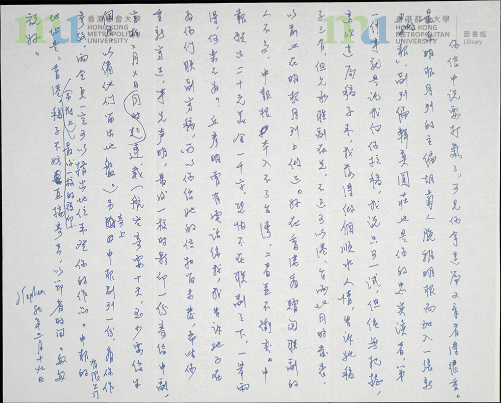 Part of: 40 - 宋淇致張愛玲信件 (1980年3月19日) = Letter from Stephen Soong to Eileen Chang (19 March 1980) (3 objects)