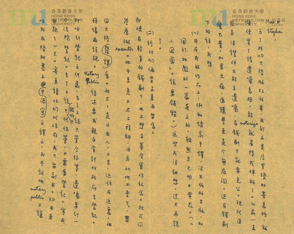 Part of: 43 - 張愛玲致宋鄺文美及宋淇信件 (1992年2月25日) = Letter from Eileen Chang to Mae Fong Soong and Stephen Soong (25 February 1992) (2 objects)