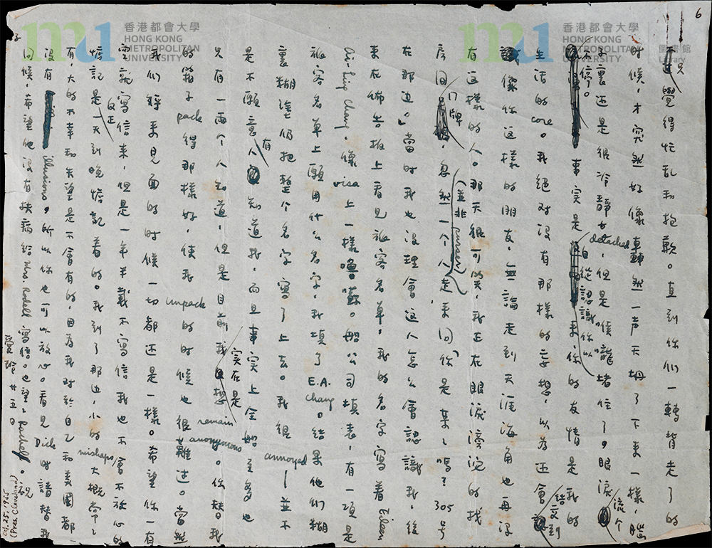 頁6 = page 6 | 張愛玲致宋鄺文美信件 (1955年10月25日) = Letter from Eileen Chang to Mae Fong Soong (25 October 1955)