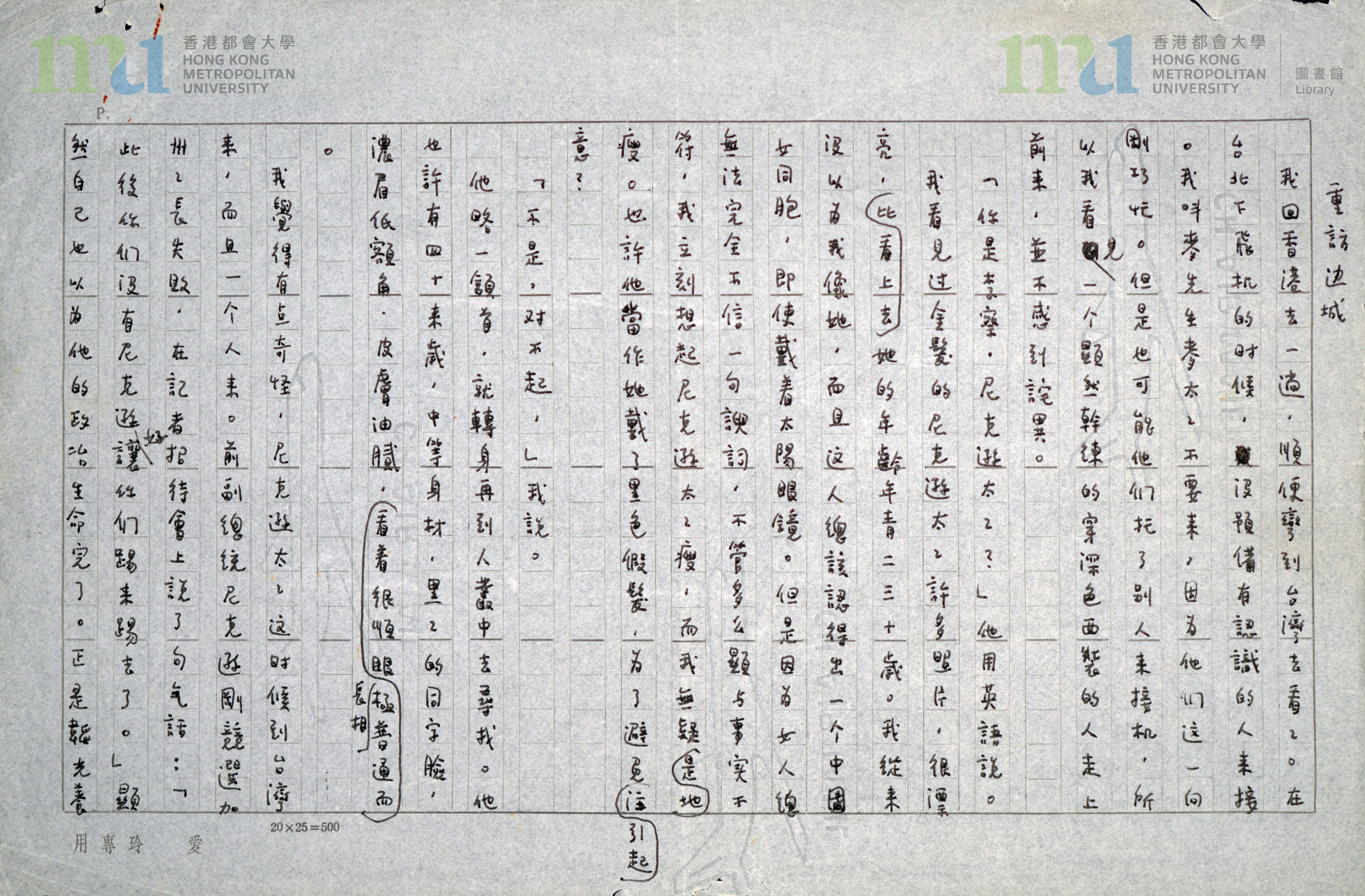 01 - 〈重訪邊城〉手稿 = Manuscript: ‘A Return to the Frontier’