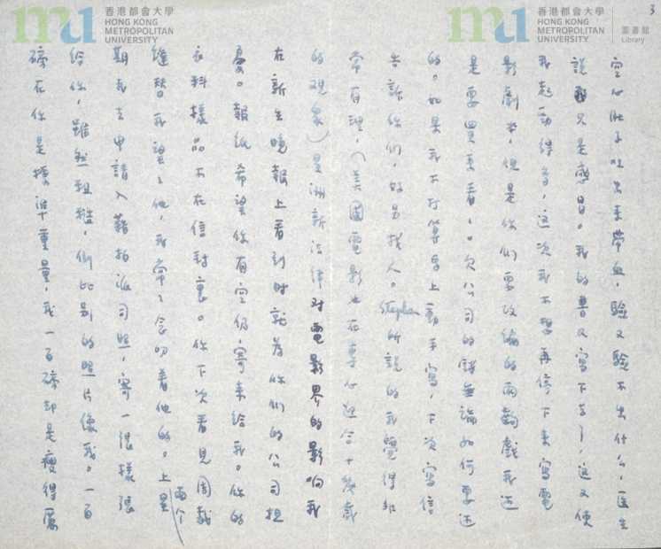 頁3 = page 3 | 張愛玲致宋鄺文美信件 (1959年11月26日) = Letter from Eileen Chang to Mae Fong Soong (26 November 1959)