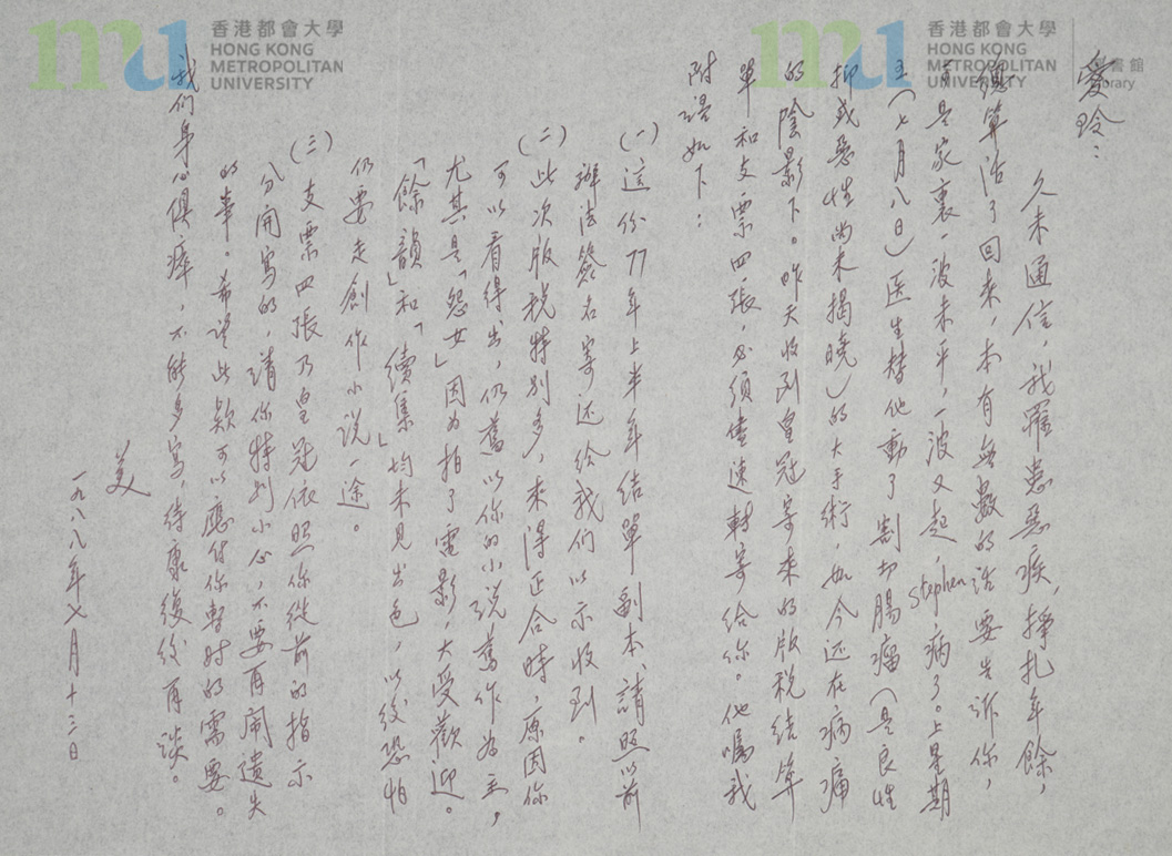 13 - 宋鄺文美致張愛玲信件 (1988年7月13日) = Letter from Mae Fong Soong to Eileen Chang (13 July 1988)