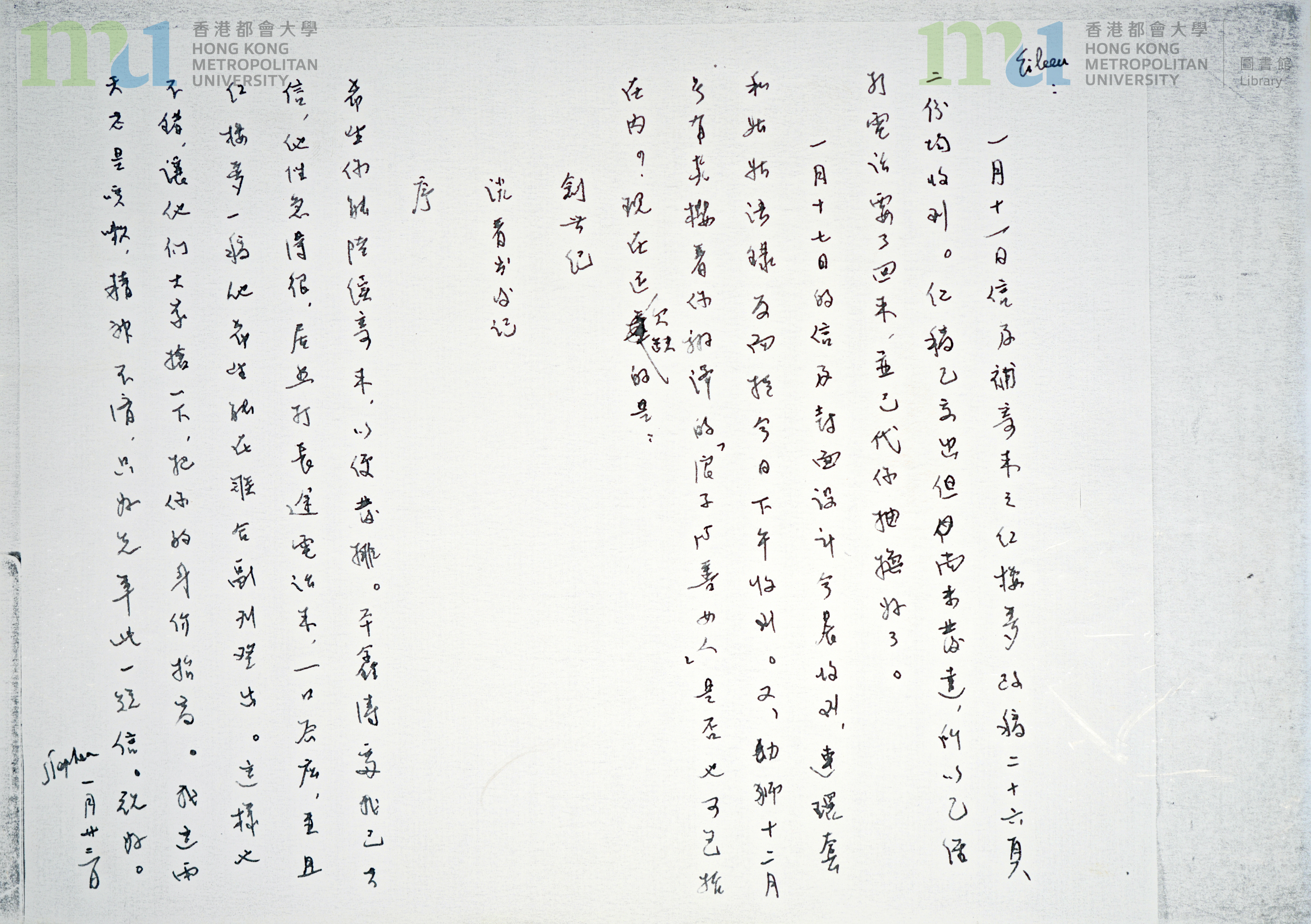 1975-01-23 | 宋淇致張愛玲信件 (1975年1月23日) (影印本) = Letter from Stephen Soong to Eileen Chang (23 January 1975) (Photocopy)
