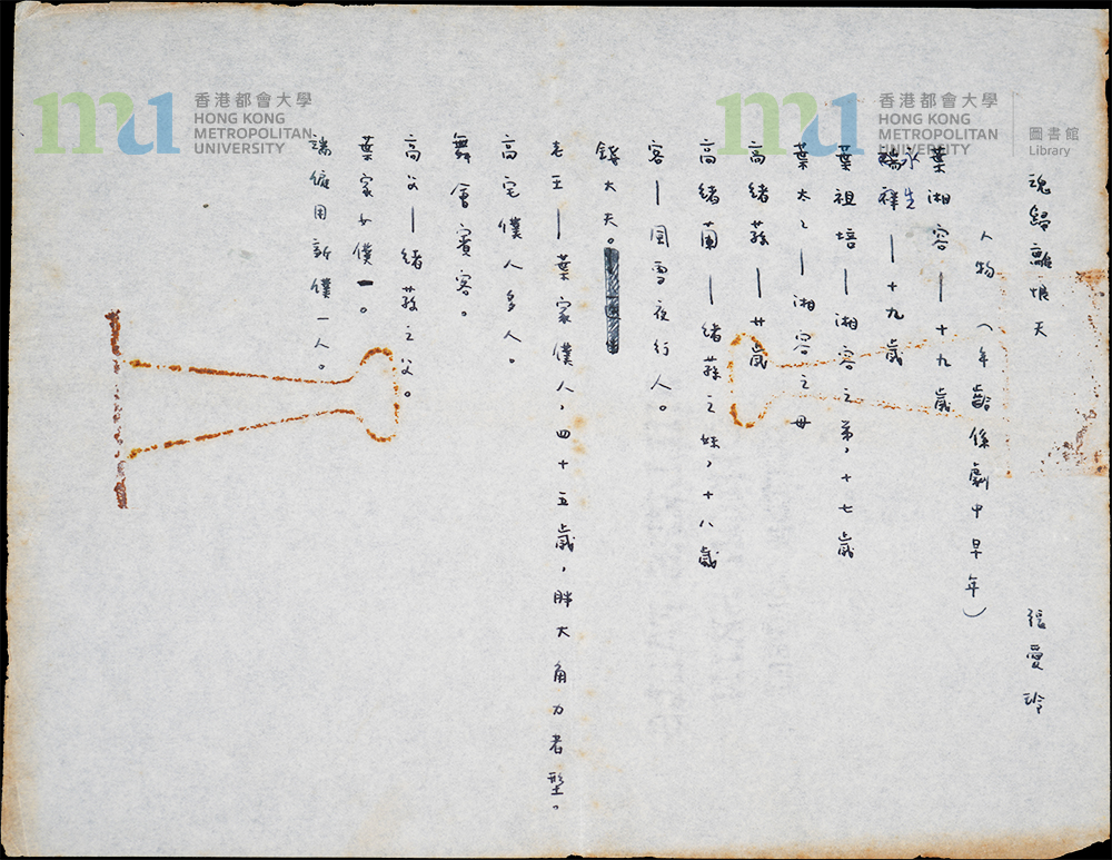 Part of: 33 - 《魂歸離恨天》手稿 = Manuscript: Love Lingers On (5 objects)