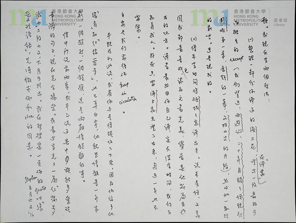 Part of: 37 - 宋淇致張愛玲信件 (1976年5月6日) (影印本) = Letter from Stephen Soong to Eileen Chang (6 May 1976) (Photocopy) (2 objects)