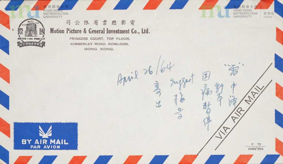 信封 = envelope | 秦羽致張愛玲信件 (1964年4月20日) = Letter from Nellie Chin Yu to Eileen Chang (20 April 1964)