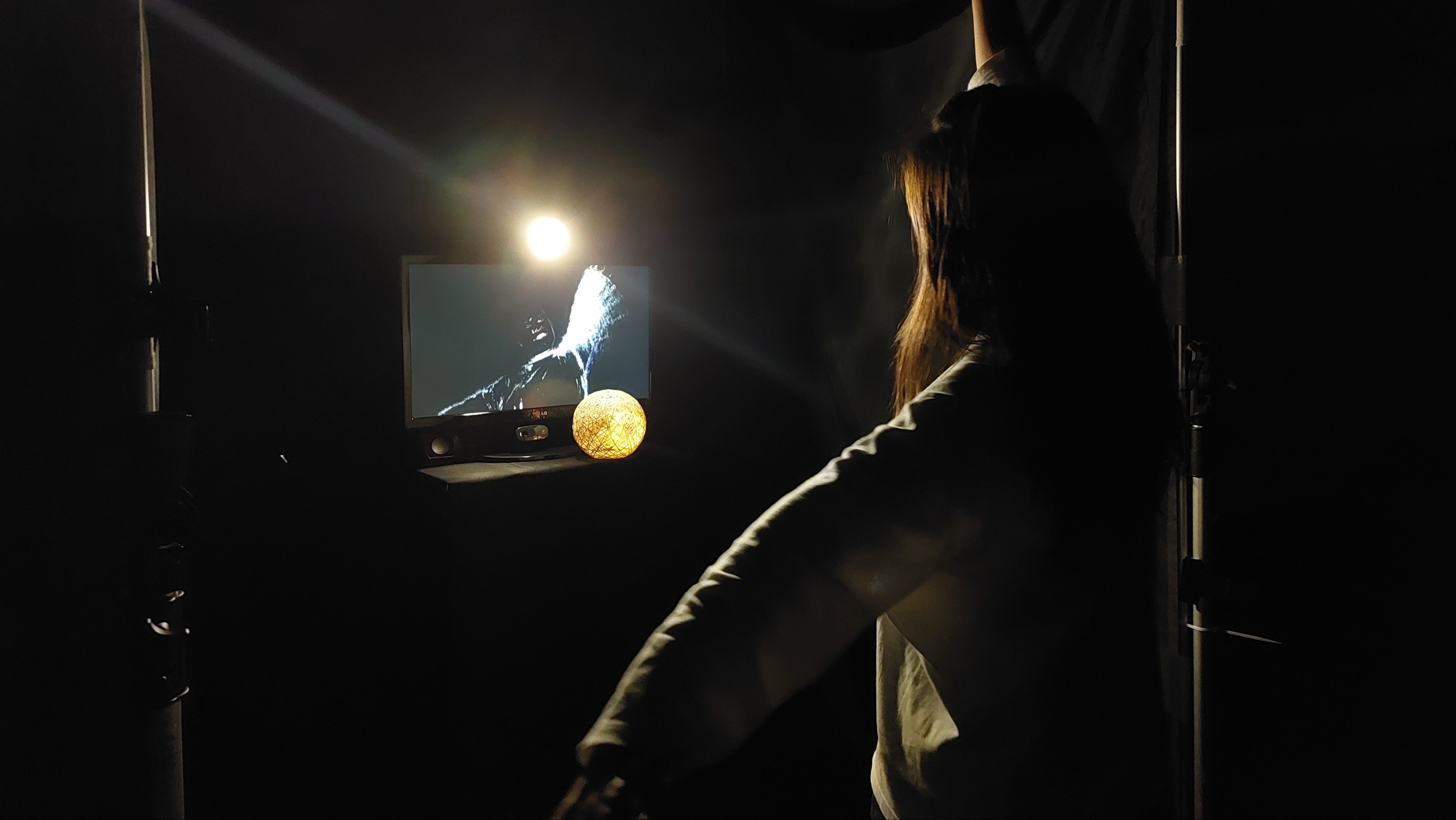 This artwork aims to give people a relaxing experience. The screen will capture the people's movements under the light in real time. The light and music cooperate with the rhythm of their body to purify and relax their body and mind, and feel their own sense of being.