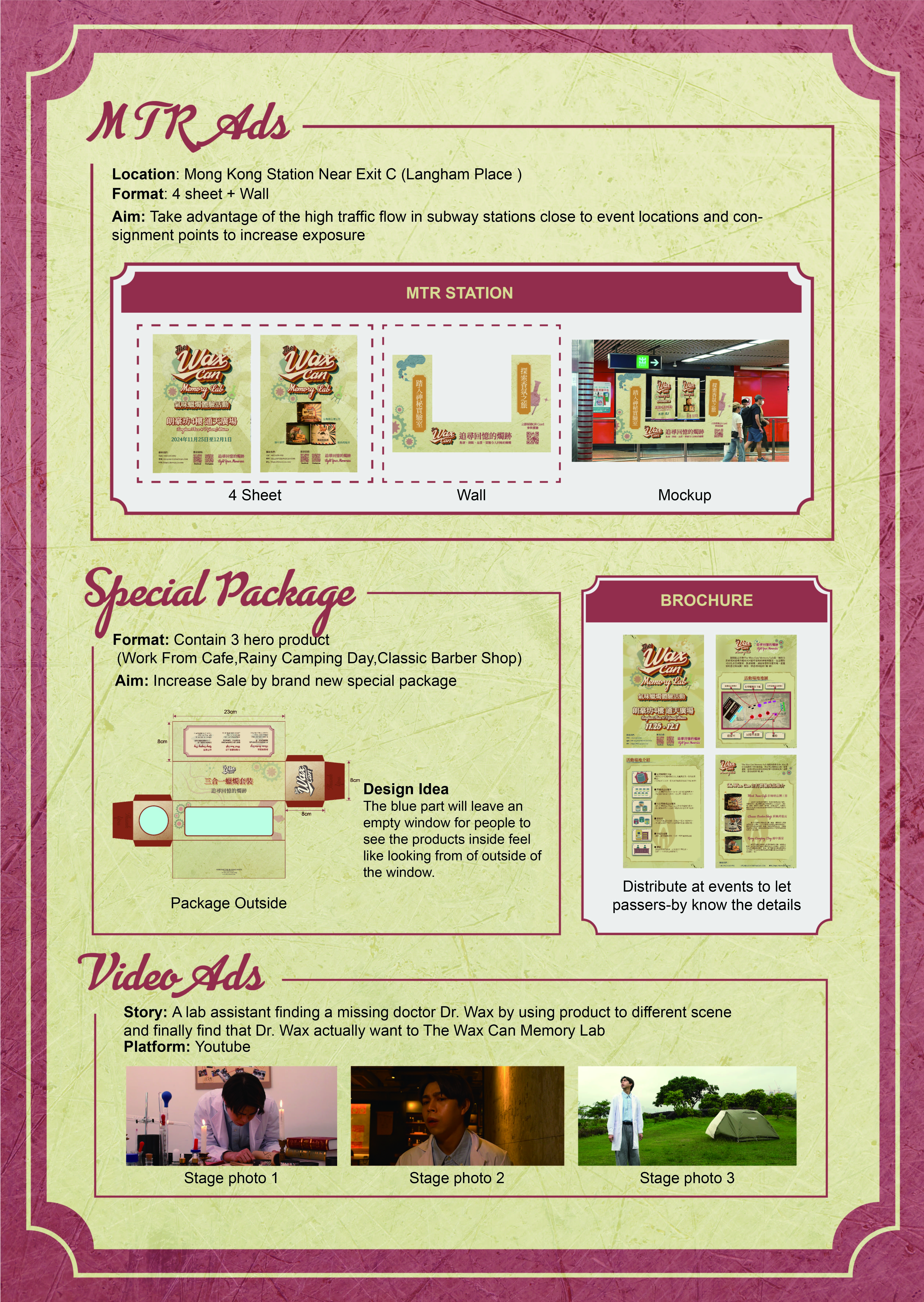 利用The Wax Can Memory Lab為主題,本廣告活動旨在向目標受眾傳達香薰蠟燭品牌The Wax Can的復古風格、氣味還原度高,以及氣味獨特等產品特性,目的是提高品牌的知名度、銷量和產品使用頻率。