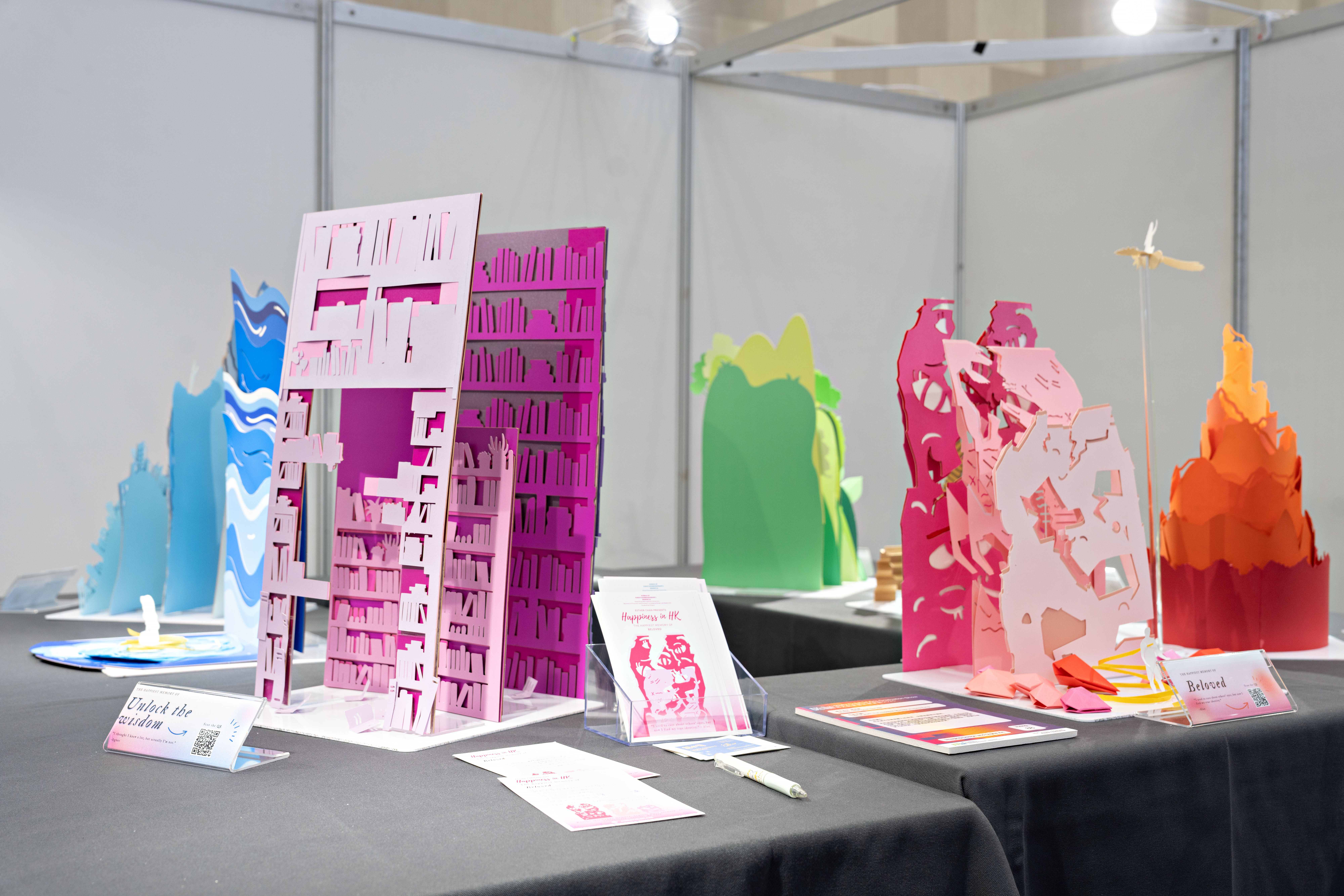 此作品旨在將這些不易察覺的快樂回憶再次展現。作品以8位本地香港人的「最幸福時刻」為題,以抽象的形式描繪他們的回憶,使用色彩和紙藝去表現快樂能多於一種概念一種色彩。作品中還包含了他們與快樂時刻有關的照片和錄音。希望引發更大的反思,什麼是我們的快樂來源。