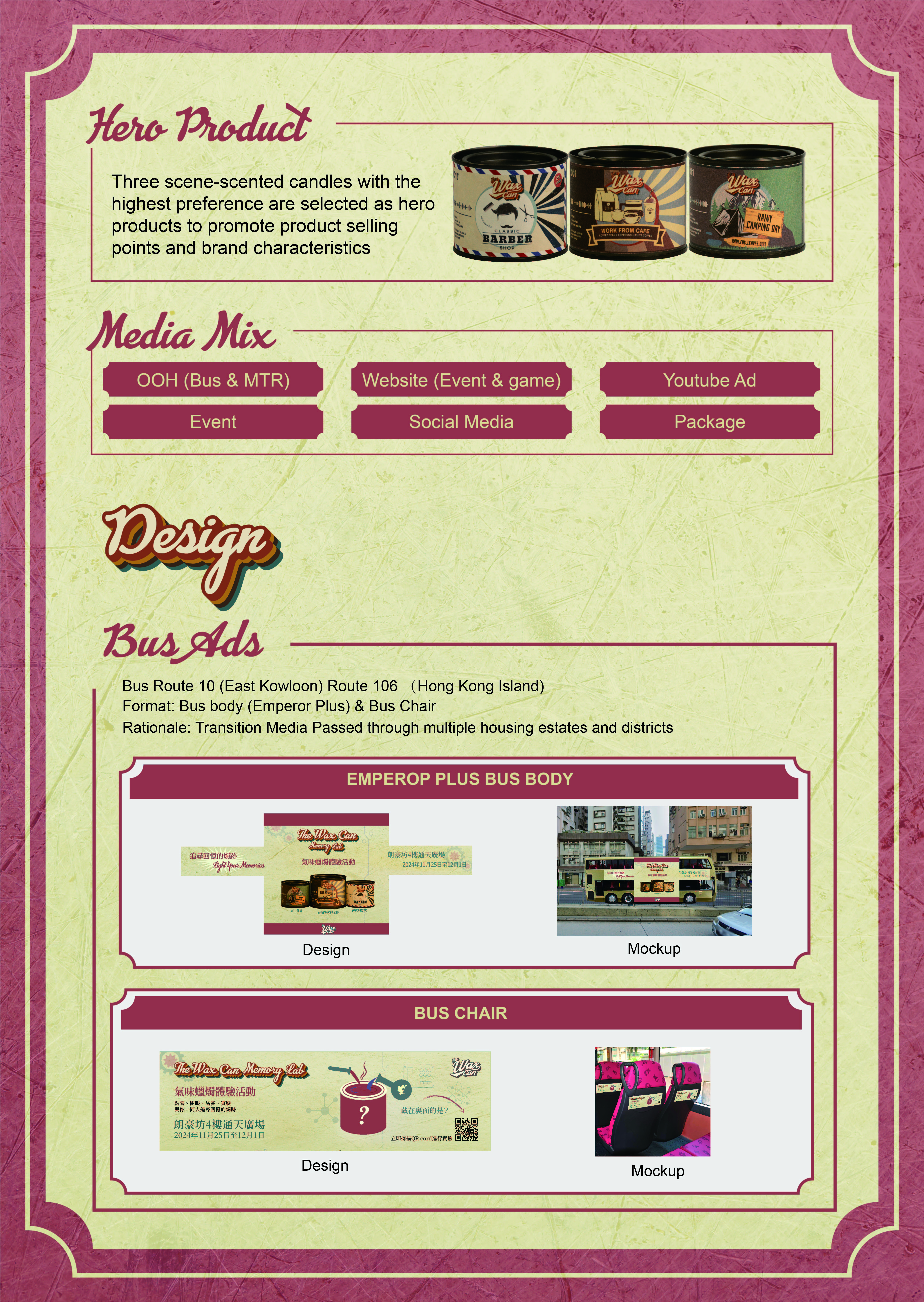 利用The Wax Can Memory Lab為主題,本廣告活動旨在向目標受眾傳達香薰蠟燭品牌The Wax Can的復古風格、氣味還原度高,以及氣味獨特等產品特性,目的是提高品牌的知名度、銷量和產品使用頻率。
