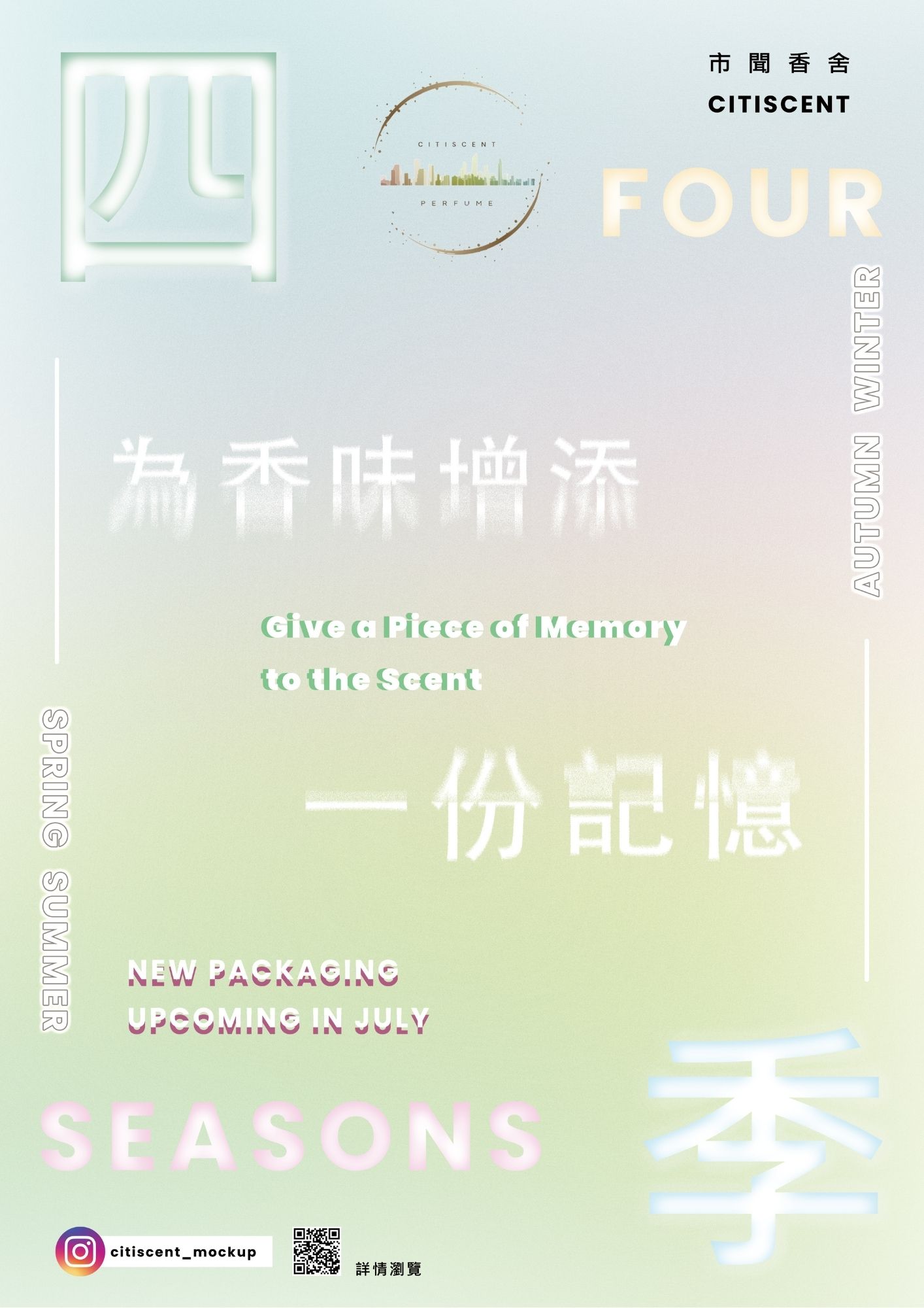 市聞香舍創立於2022年,是一個香港本土香水品牌。由於很多人對市聞香舍缺乏了解,甚至從未聽聞過品牌的存在,因此我們的創作團隊將利用一系列的廣告及宣傳活動來重塑品牌形象。透過重新設計包裝、規劃社交媒體互動、活動行銷及限定宣傳品,我們希望能增加大眾對市聞香舍的認識和興趣。我們將以圖像和文字來展示香港的四季與日夜,從而與觀眾建立情感聯繫,喚起他們對香港的記憶。